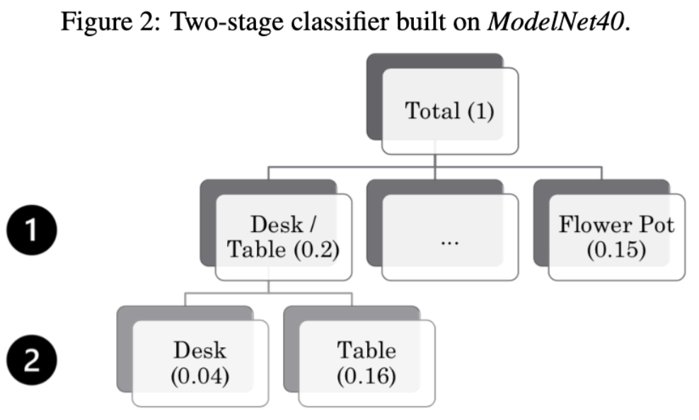 Without loss of generality, we built a two-stage classifier (Figure 2) based on PointConv, which can better distinguish between tables and desks while still achieve comparable accuracy on the other classes of objects. Experiments were carried out using ModelNet40 to train and test the system.